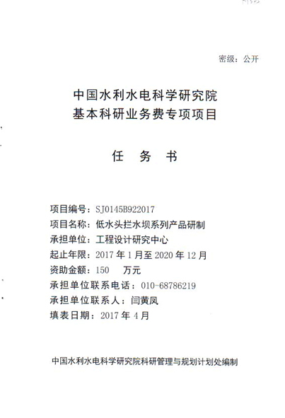 整體式合頁活動(dòng)閘系列產(chǎn)品研發(fā)工作首次獲得中國水利水電科學(xué)研究院基本科研業(yè)務(wù)費(fèi)團(tuán)隊(duì)建設(shè)及人才培養(yǎng)類專項(xiàng)項(xiàng)目經(jīng)費(fèi)支持。項(xiàng)目編號:SJ0145B922017,項(xiàng)目名稱:低水頭攔水壩系列產(chǎn)品研制,資助金額:150萬元。