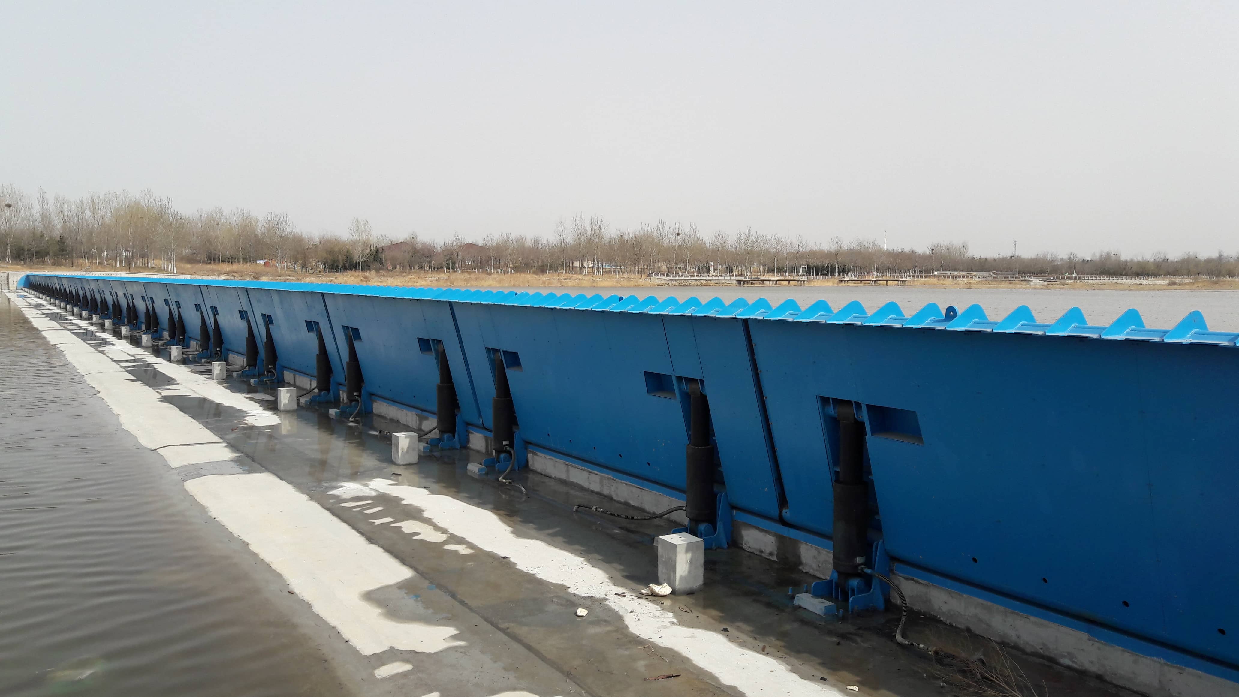 工程介紹: 工程位于黃水河入??谔帲O計防洪標準50年一遇,閘板正常擋水高度2米,建設目的是防止海水入侵,涵養(yǎng)淡水水源。