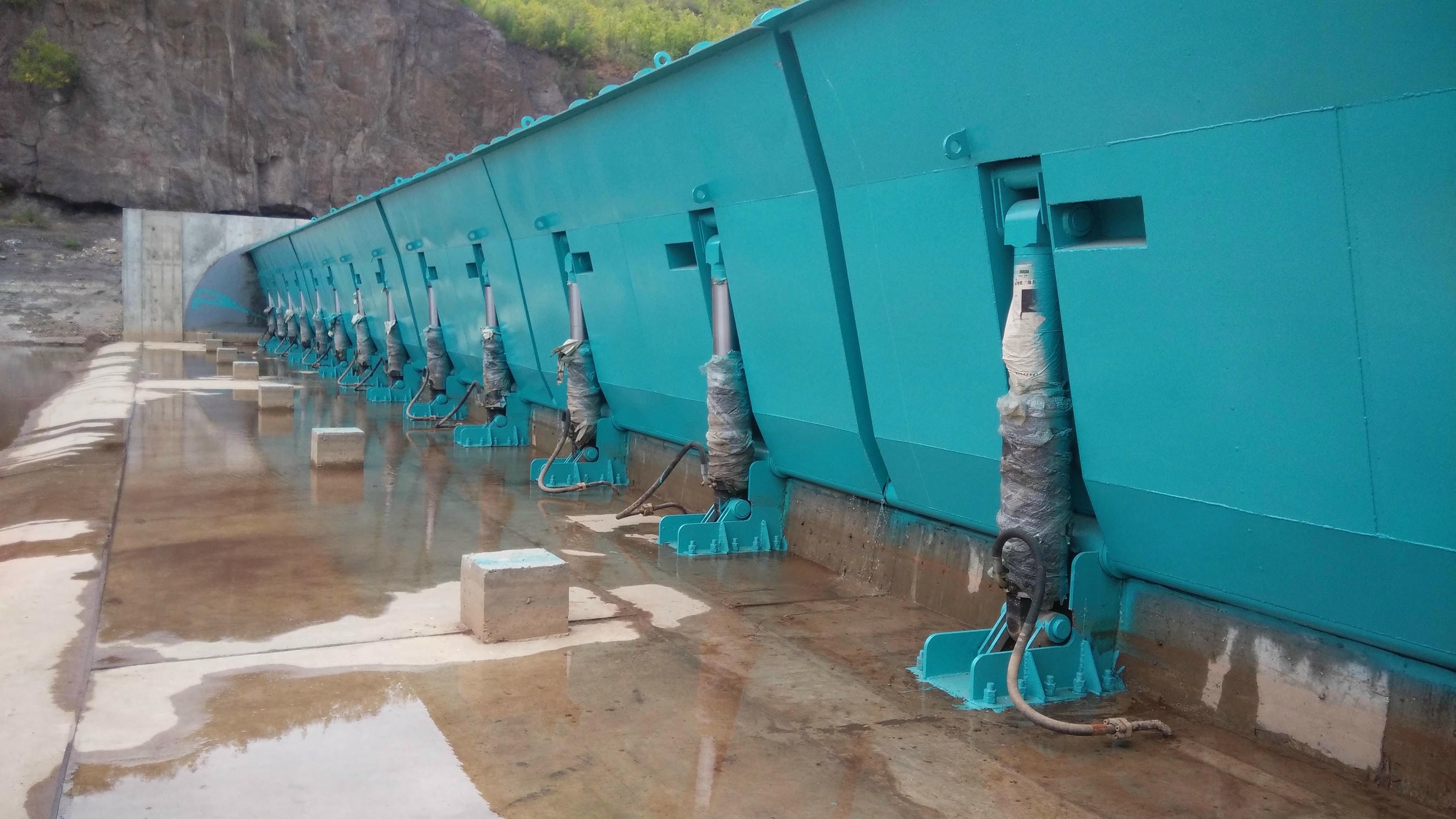 工程介紹:該工程包括42米長(zhǎng)、2.5米高的合頁(yè)閘及一扇6米長(zhǎng)3米高的液壓翻板閘,主要用于景觀蓄水、漂流,并保留當(dāng)?shù)靥赜形锓N中華龜?shù)纳鷳B(tài)遷移通道。